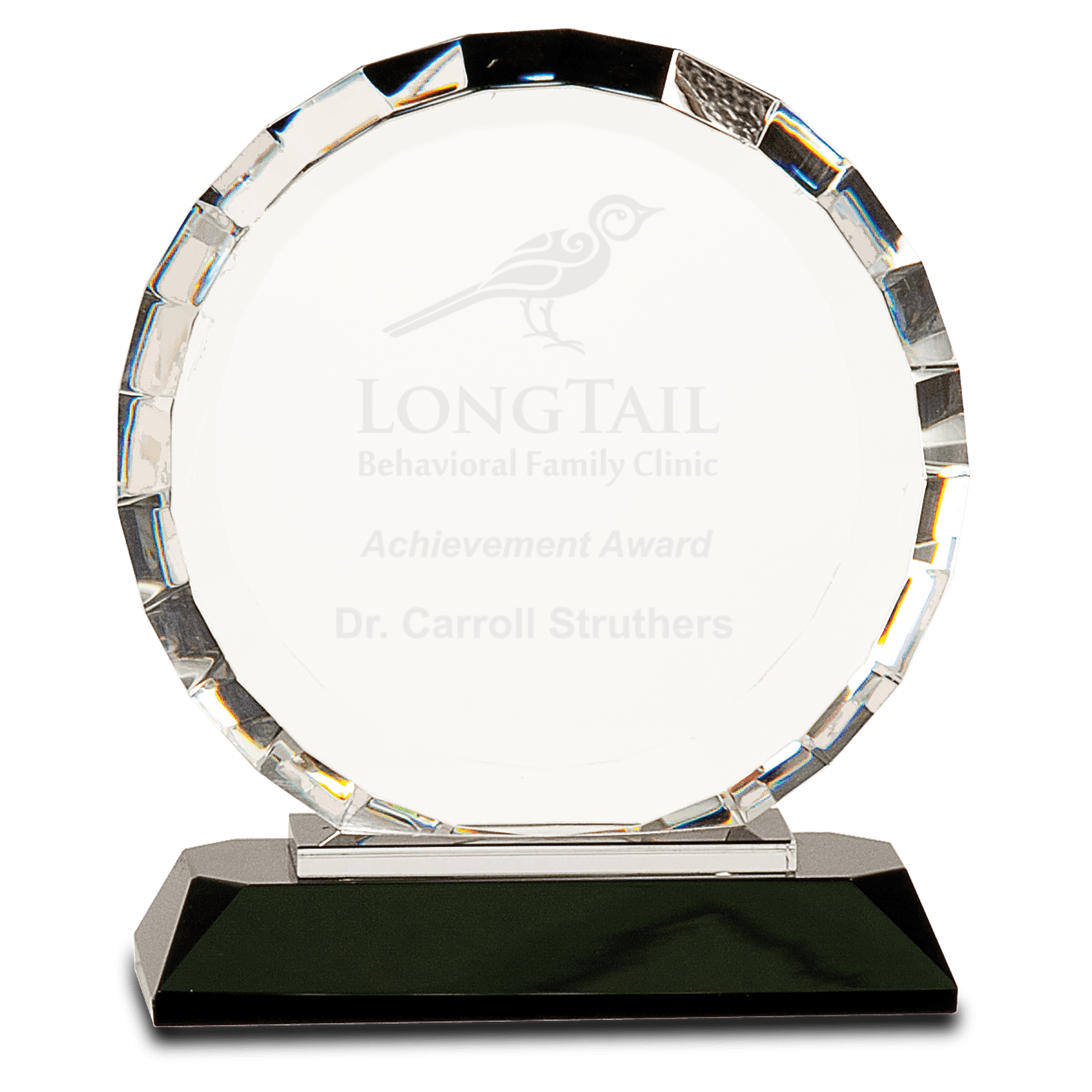 6" Crystal Round with Rectangle Facet on Black Crystal Base