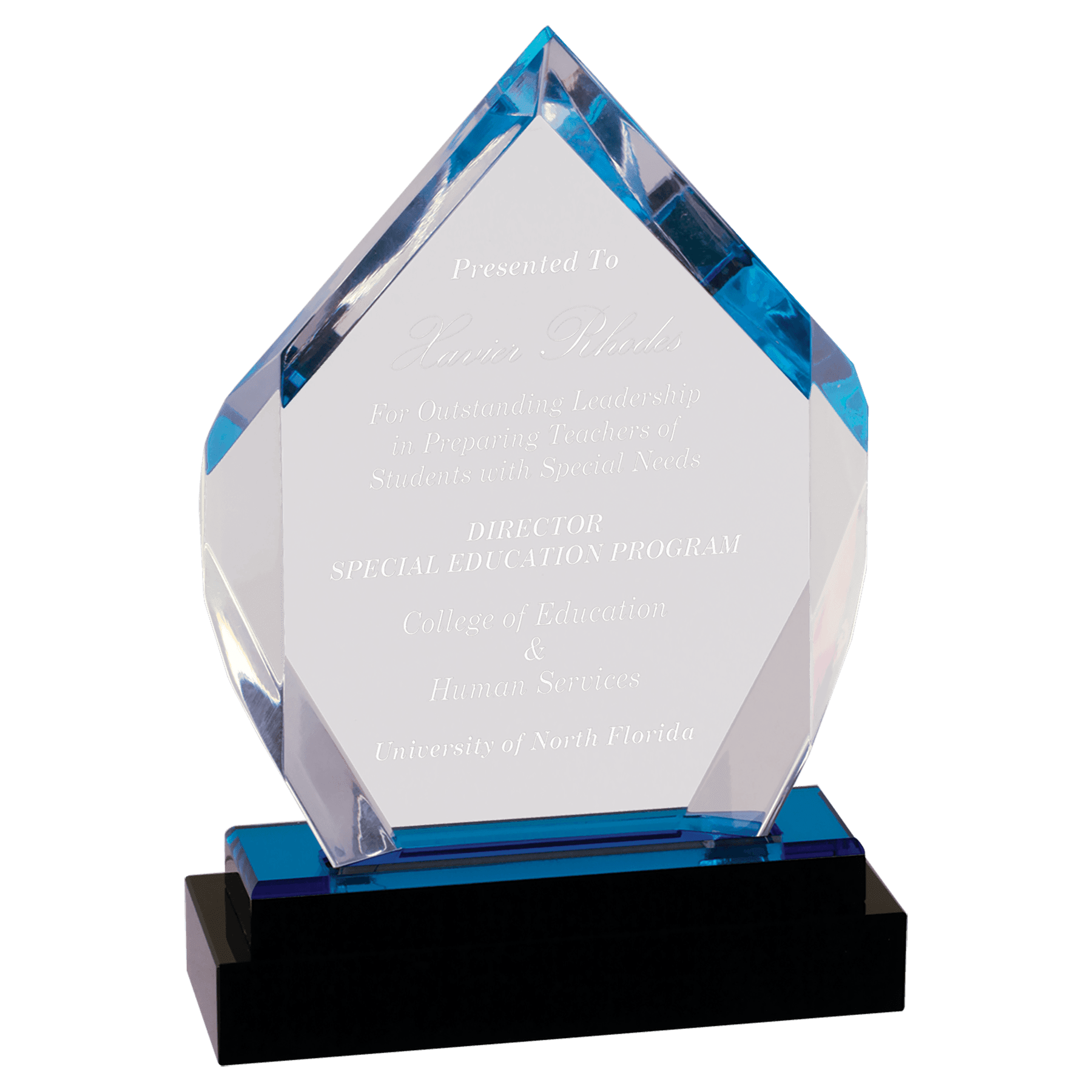 Blue Fusion Diamond Impress Acrylic with Black Crystal Base